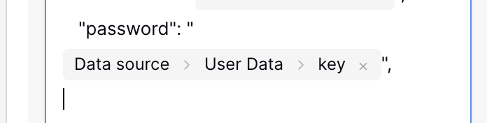 And then inside the empty string, click a formula from a data source / page parameter, and it’ll get added to your JSON.