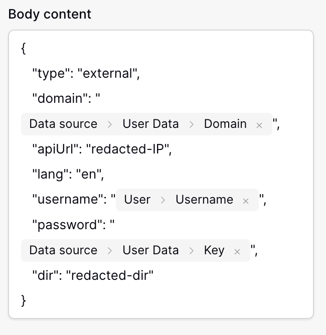 When the HTTP request is sent, we will resolve that formula and add the correct dynamic value into your JSON.