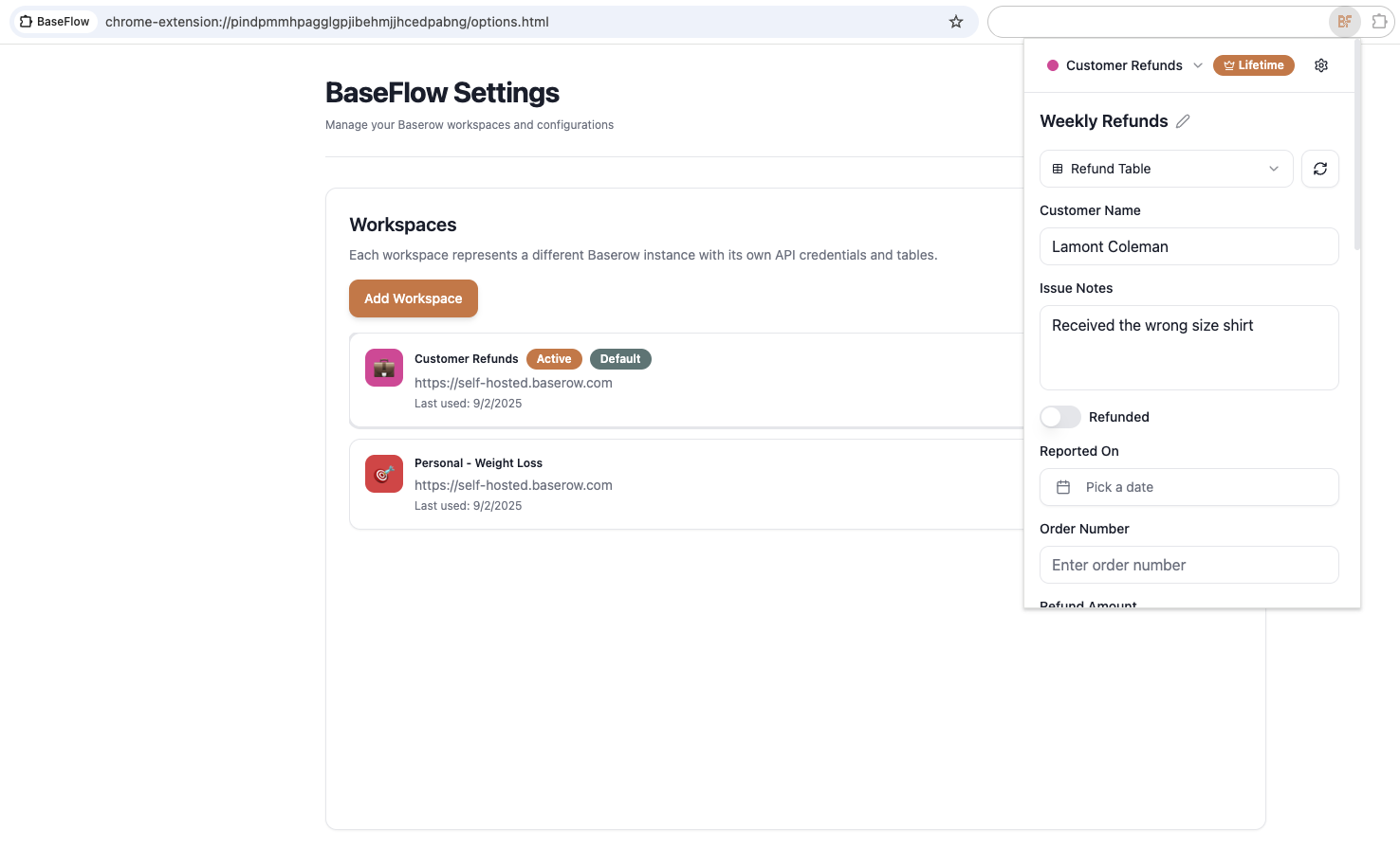 Enter BaseFlow, the quick add Chrome Extension for adding data to your Baserow workspaces! Note: This is not a web-clipper.