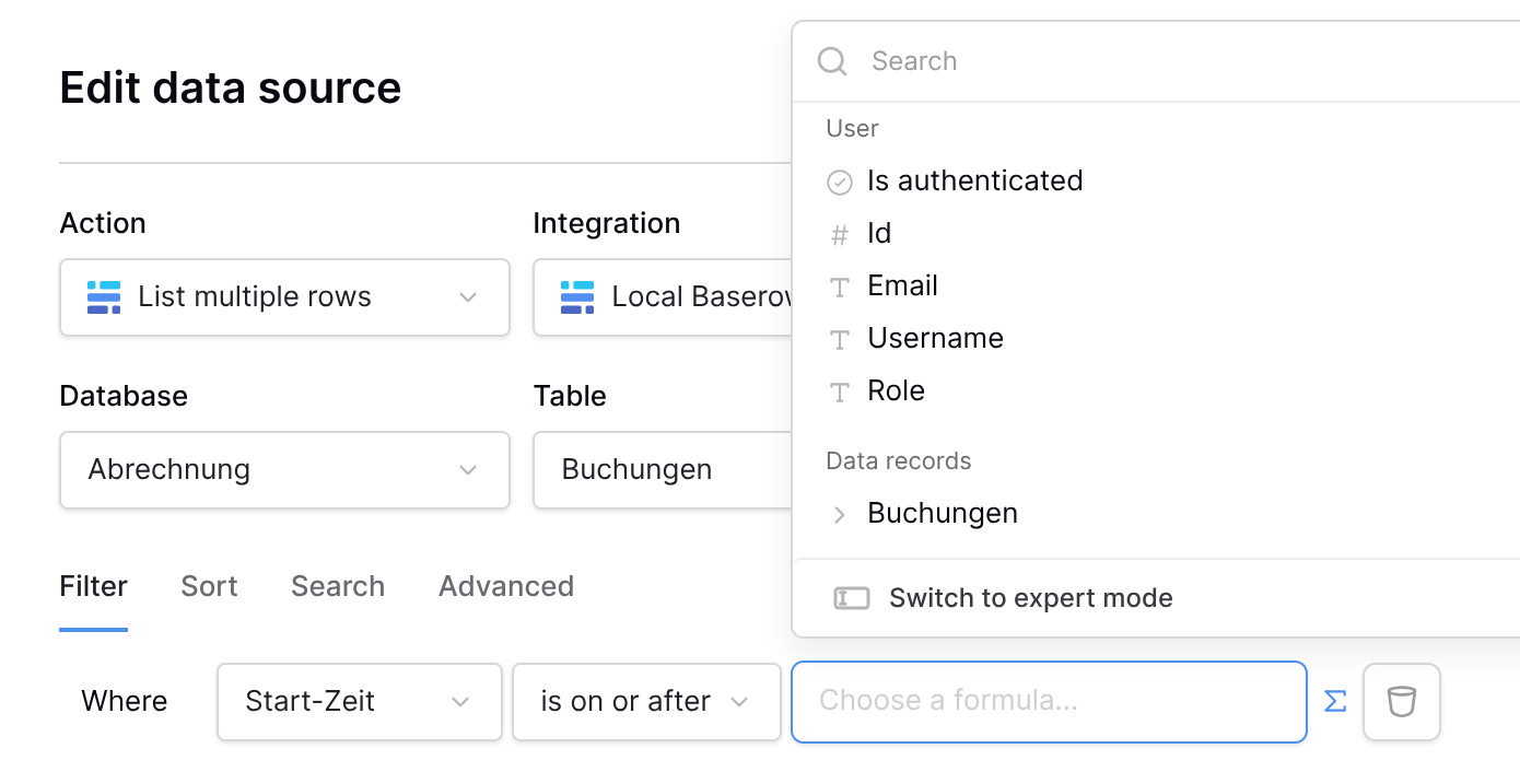 I have a grid element which links to datasource1 and one filter field (for meeting property - link to table). How can I setup the datasource for the grid to use my fitler field like a dinamic filter for a grid? Guess it shoud be managed by formula in datasource filter section, but I cant find any examples of working with formulas in applications.