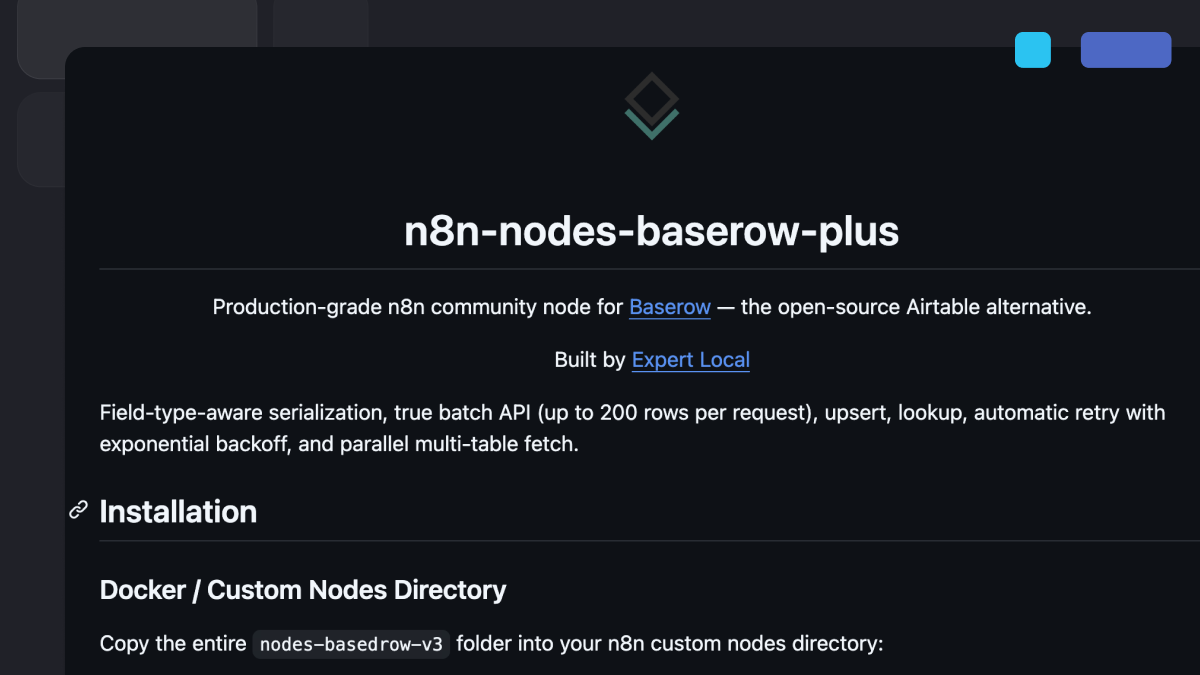 A community member open-sourced a custom n8n node to support more complex Baserow automation workflows.
