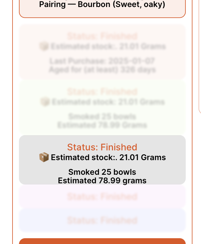 For instance, a tobacco in my wishlist doesn’t need to show the number of bowls smoked (as it would-be zero), or a tobacco I haven’t smoked yet, doesn’t show a rating field.