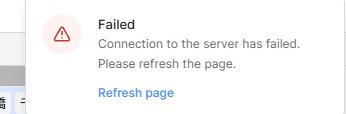 - Upon returning, all tabs display the popup: “Failed. Connection to the server has failed.”