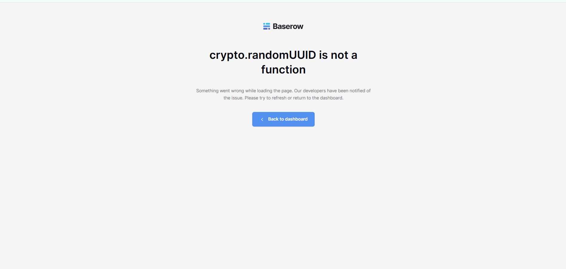After this error, the page shows the Baserow error screen and I cannot continue working.