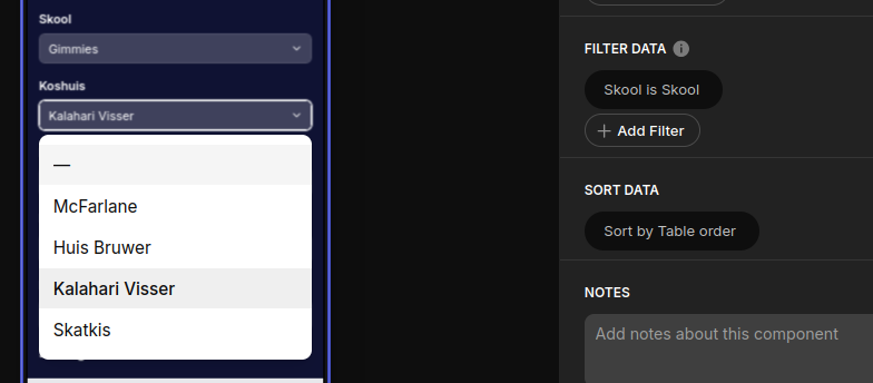 Hi everyone. Sorry for the vague heading. The kids we transport obviously are in a school but also in a hostel, so the 2 tables are linked by a Link to Table field.