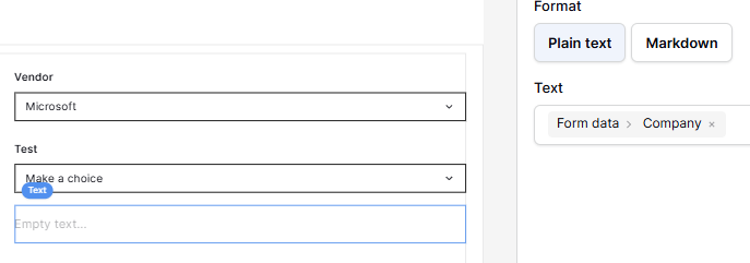 But surprisingly within the ‘Vendor’ value field, I can only use the data records, whereas in the text and I have access to the data records AND the form data.