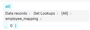 I want to use that number with the at() function to fetch the corresponding employee_mapping string from the same row.