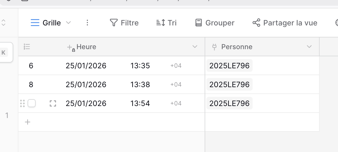 I’ve put together a simple app that scans NFC cards and sends the volunteer’s ID to Baserow. Each scan creates a new row with the current date and time.