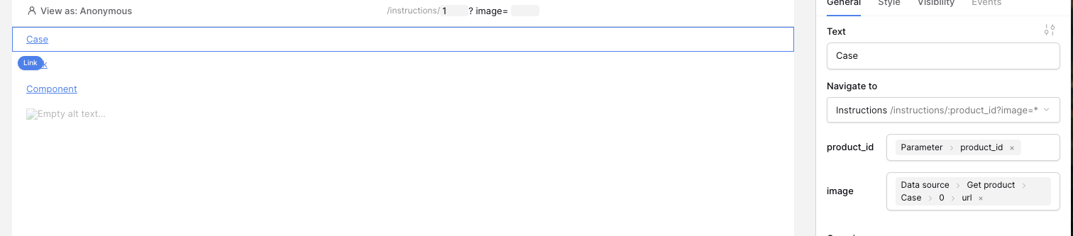 In the APP I then created 3 buttons and the idea is when you click the button, it replaces the image on the page with one of the 3 fields from the table. My approach is that when they click the button, it updates a field in the table/row in the DB and refreshes the page.