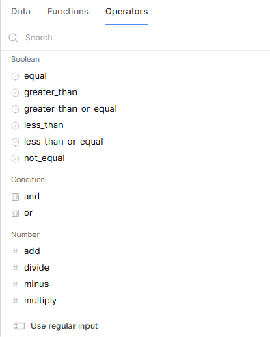 Do you have some documentation I can refer to formula and operators for this kind of scenario?