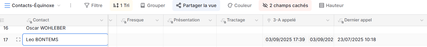 In one table I have a certain member, “Leo BONTEMS” who was called 3 times (as shown in screenshot #1)