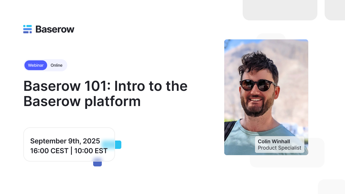 New to Baserow? Join our Baserow 101 Webinar on September 9th, 16:00 CEST.