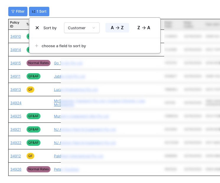 Finally, the external user sorting is available for the fields you selected in “User actions”. These sorts aren’t persisted and just applied on the fly.