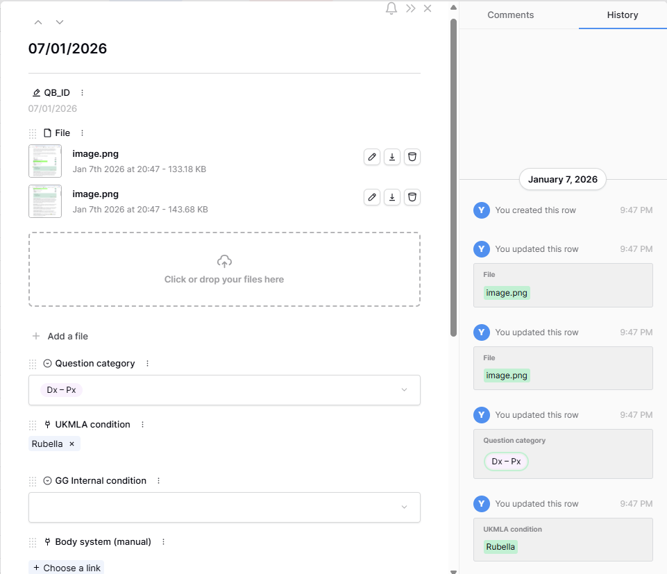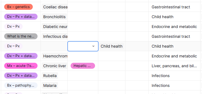3. There are no APIs or other automations. The only script I had is ‘if( not(isblank(field(‘UKMLA condition’))), ‘UKMLA’, if( not(isblank(field(‘GG Internal condition’))), ‘Internal’, ‘Uncategorised’ ))’