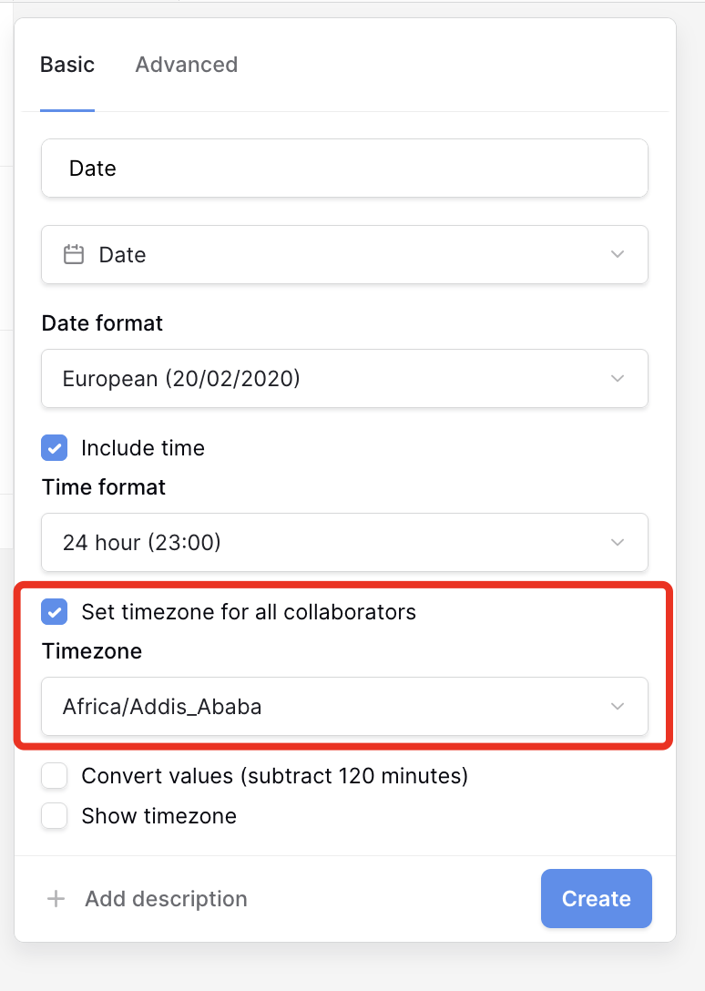 The issue is when importing some csv file where the records are created during Addis Ababa time. If a record is created at 1:58pm Addis time which is then imported in baserow and you try to set the timezone in Baserow and match that as Addis timezone, then you can’t get those records to adjust correctly without a browser extension.