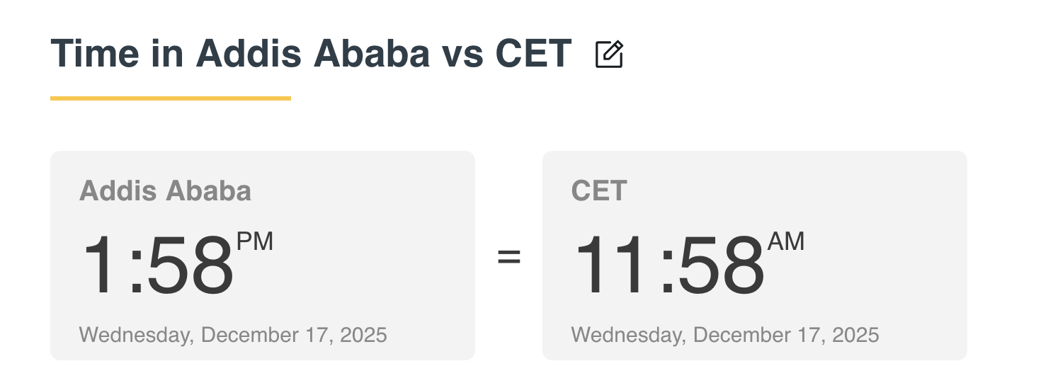 Hey @360Creators, I checked and it seems to be working correctly, as there’s a 2-hour (120-minute) difference between Addis Ababa and CET: