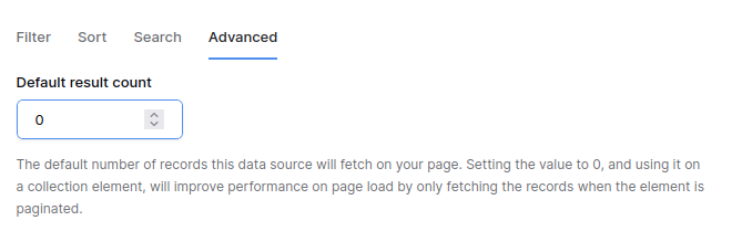 For data sources used only in collection elements like tables and repeats, you can set the default returned row count to 0 to prevent an unnecessary dispatch.
