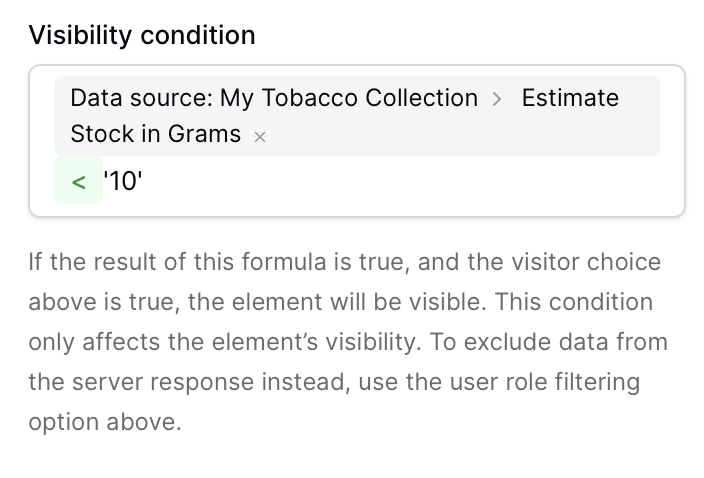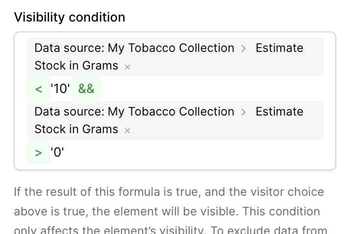 but bottomline = I want a certain button to be only visible if my theoretical stock is below 10 grams.
